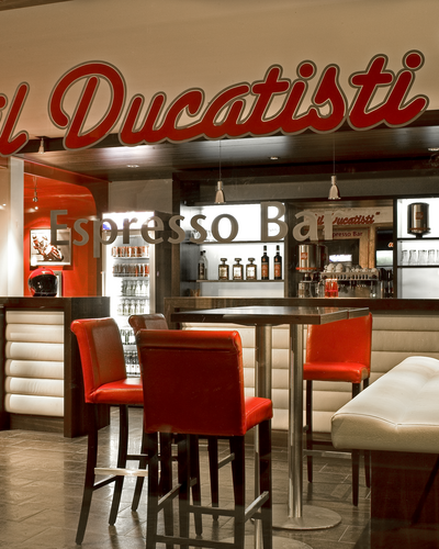 Das Café „il Ducatisti“ präsentiert sich modern und stilvoll eingerichtet und liegt gleich gegenüber dem MOHR life resort. Neben exklusiven Illy-Kaffee-Produkten, Piadine und Eis finden Sie im „il Ducatisti“ einen kleinen, feinen Ducati Shop mit ausgewählten Artikeln und die Ducati Motorräder, Scooter und Segways, die Sie je nach Verfügbarkeit ausleihen können.