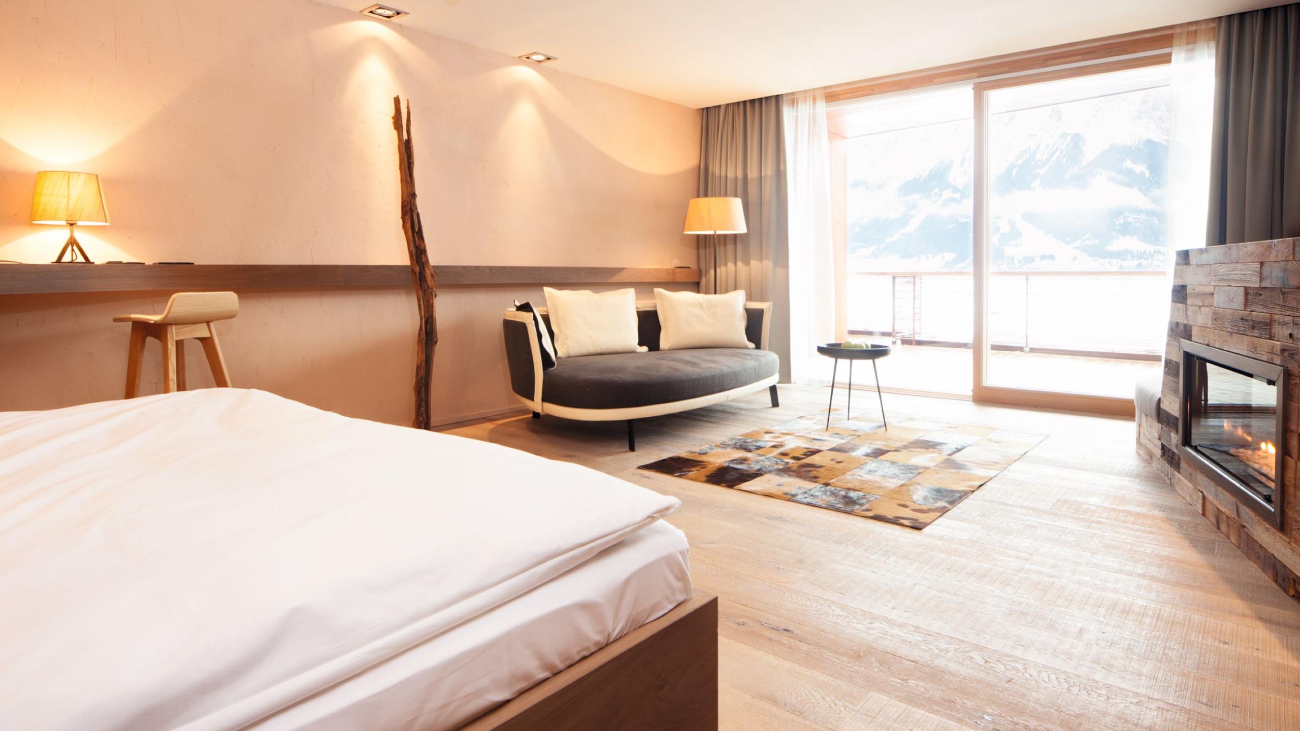 Kingsize-Bett | Dusche | separates WC | Glaskamin | Kuschelcouch | Leseecke | Schreibtisch | Schrankraum | Garderobe | Zugspitz- und Bergeblick | Espressomaschine | Trinkbrunnen | Holzboden | großzügiger Balkon mit Liegestühlen
