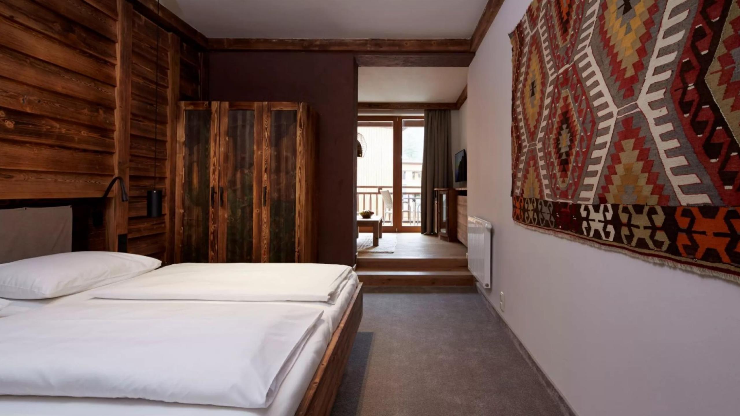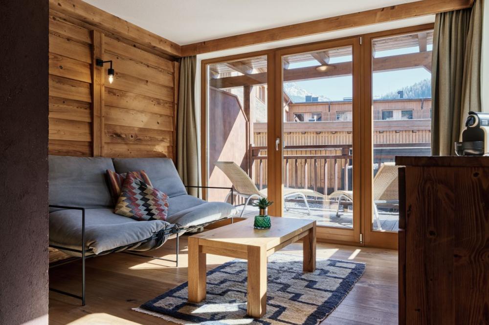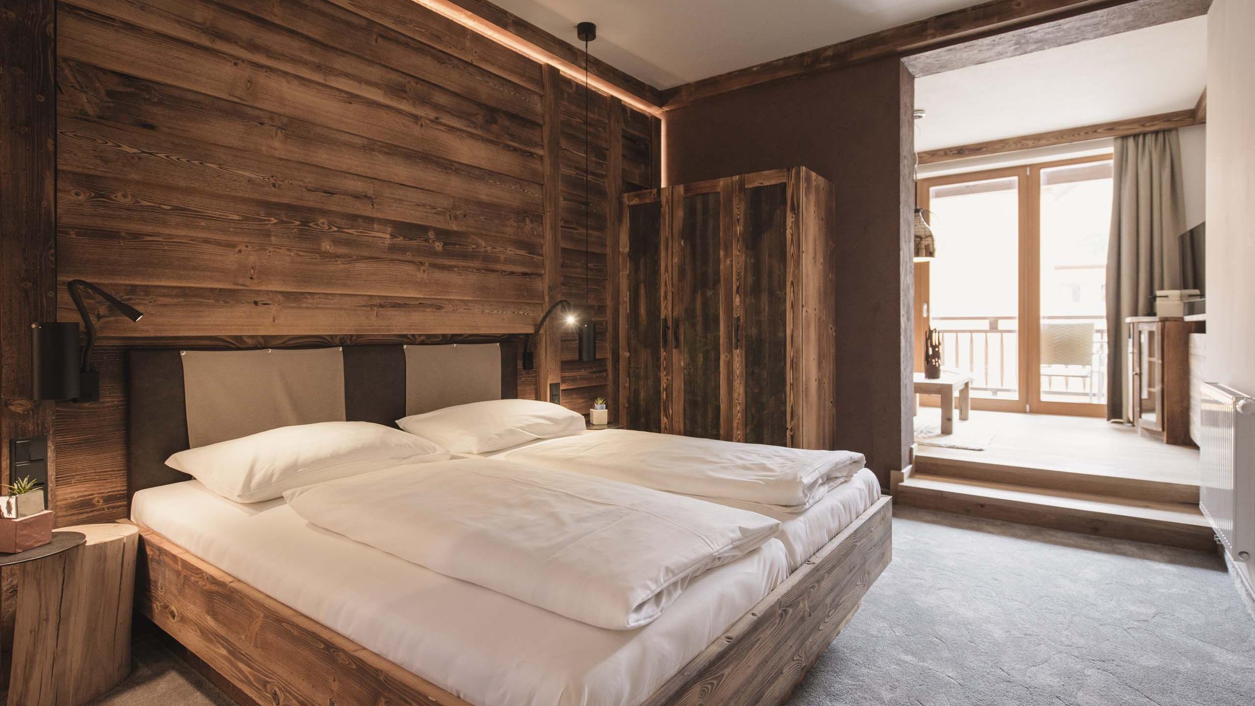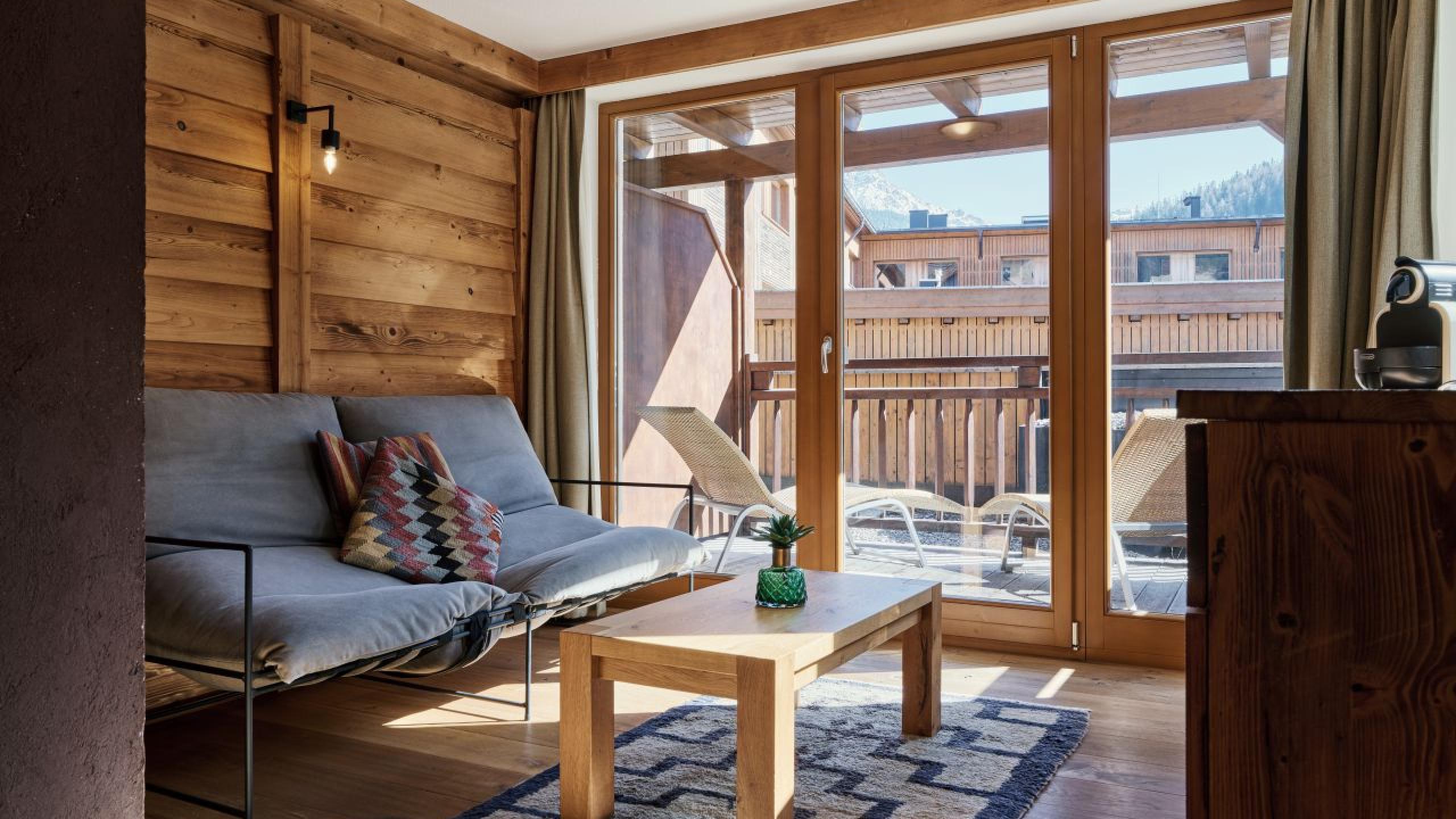 Doppelbett | Dusche | indirekter Bergblick | Espressomaschine | Sofa | Kombination aus Teppich- und Holzboden | Balkon | Lage: Süden